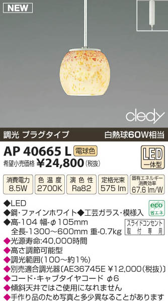 ¥³¥¤¥º¥ß¾ÈÌÀ KOIZUMI LED¥Ú¥ó¥À¥ó¥È AP40665L