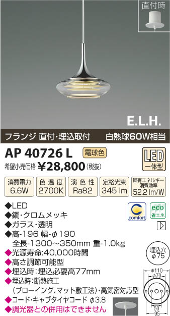 ¥³¥¤¥º¥ß¾ÈÌÀ KOIZUMI ¥Ú¥ó¥À¥ó¥È LED AP40726L