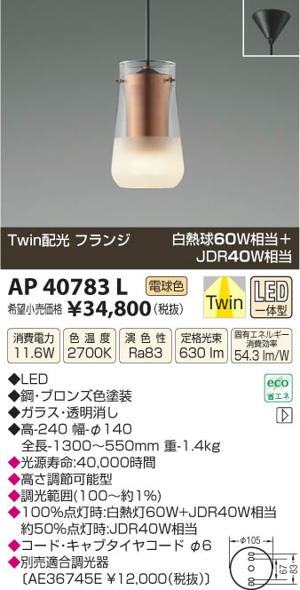 ¥³¥¤¥º¥ß¾ÈÌÀ KOIZUMI ¥Ú¥ó¥À¥ó¥È LED AP40783L
