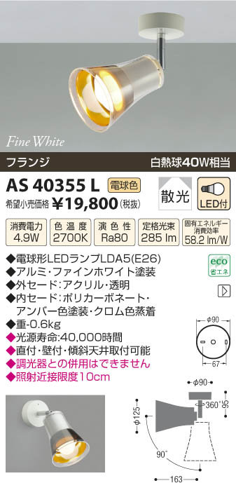 ¥³¥¤¥º¥ß¾ÈÌÀ KOIZUMI ¥¹¥Ý¥Ã¥È¥é¥¤¥È LED AS40355L
