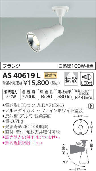 ¥³¥¤¥º¥ß¾ÈÌÀ KOIZUMI LED ¥¹¥Ý¥Ã¥È¥é¥¤¥È AS40619L