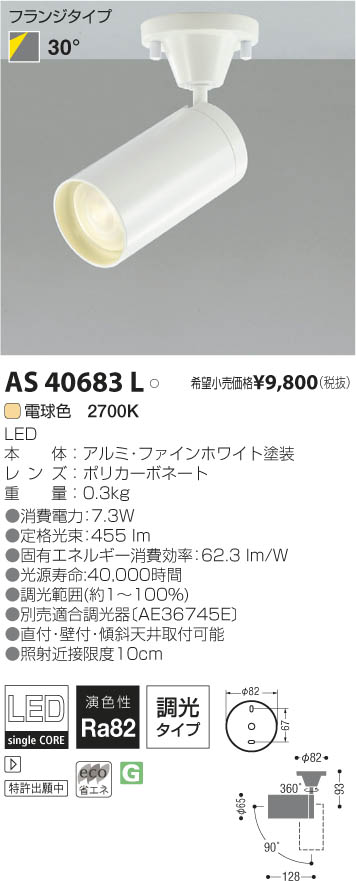 ¥³¥¤¥º¥ß¾ÈÌÀ KOIZUMI LED¥¹¥Ý¥Ã¥È¥é¥¤¥È¡Ê¥Õ¥é¥ó¥¸¡Ë AS40683L