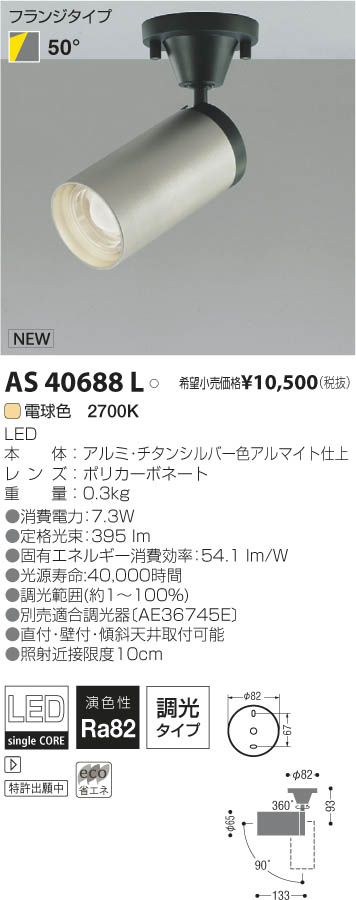 ¥³¥¤¥º¥ß¾ÈÌÀ KOIZUMI LED¥¹¥Ý¥Ã¥È¥é¥¤¥È¡Ê¥Õ¥é¥ó¥¸¡Ë AS40688L