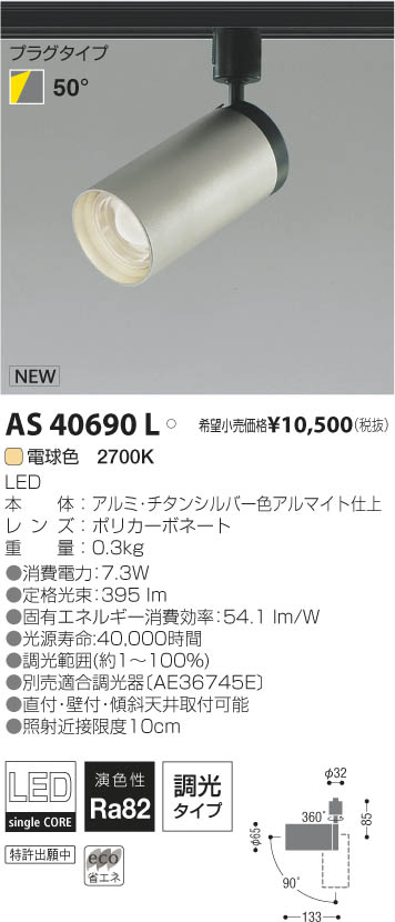 ¥³¥¤¥º¥ß¾ÈÌÀ KOIZUMI LED¥¹¥Ý¥Ã¥È¥é¥¤¥È¡Ê¥×¥é¥°¡Ë AS40690L