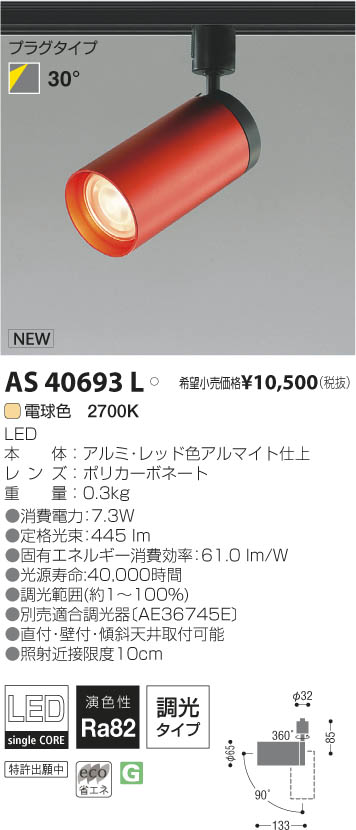 ¥³¥¤¥º¥ß¾ÈÌÀ KOIZUMI LED¥¹¥Ý¥Ã¥È¥é¥¤¥È¡Ê¥×¥é¥°¡Ë AS40693L