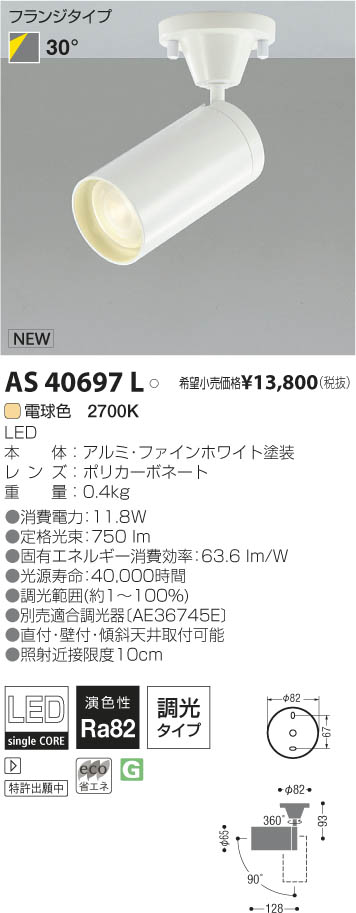 ¥³¥¤¥º¥ß¾ÈÌÀ KOIZUMI LED¥¹¥Ý¥Ã¥È¥é¥¤¥È¡Ê¥Õ¥é¥ó¥¸¡Ë AS40697L