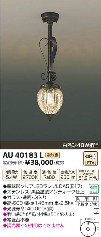 ¥³¥¤¥º¥ß¾ÈÌÀ KOIZUMI Ëɱ«·¿¥·¡¼¥ê¥ó¥° LED AU40183L