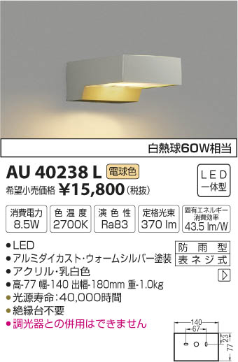 ¥³¥¤¥º¥ß¾ÈÌÀ KOIZUMI Ëɱ«·¿¥Ö¥é¥±¥Ã¥È LED¡ÊÅŵ忧¡Ë AU40238L