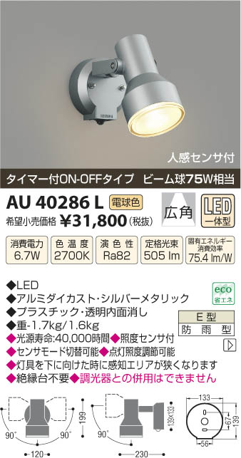 ¥³¥¤¥º¥ß¾ÈÌÀ KOIZUMI ¥¢¥¦¥È¥É¥¢¥¹¥Ý¥Ã¥È¥é¥¤¥È LED AU40286L