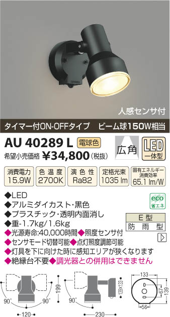 ¥³¥¤¥º¥ß¾ÈÌÀ KOIZUMI ¥¢¥¦¥È¥É¥¢¥¹¥Ý¥Ã¥È¥é¥¤¥È LED AU40289L