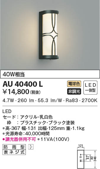 KOIZUMI ¥³¥¤¥º¥ß¾ÈÌÀ Ëɱ«·¿¥Ö¥é¥±¥Ã¥È AU40400L