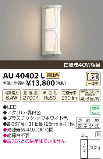 ¥³¥¤¥º¥ß¾ÈÌÀ KOIZUMI Ëɱ«·¿¥Ö¥é¥±¥Ã¥È LED AU40402L
