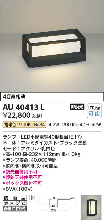Koizumi ¥³¥¤¥º¥ß¾ÈÌÀ LEDËɱ«·¿¥Ö¥é¥±¥Ã¥È AU40413L