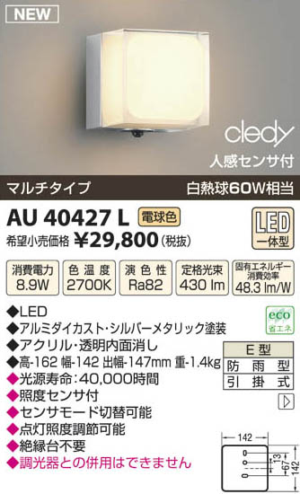 ¥³¥¤¥º¥ß¾ÈÌÀ KOIZUMI LEDËɱ«·¿¥Ö¥é¥±¥Ã¥È AU40427L