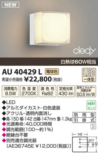 ¥³¥¤¥º¥ß¾ÈÌÀ KOIZUMI LEDËɱ«·¿¥Ö¥é¥±¥Ã¥È AU40429L