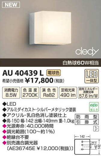 ¥³¥¤¥º¥ß¾ÈÌÀ KOIZUMI LEDËɱ«·¿¥Ö¥é¥±¥Ã¥È AU40439L
