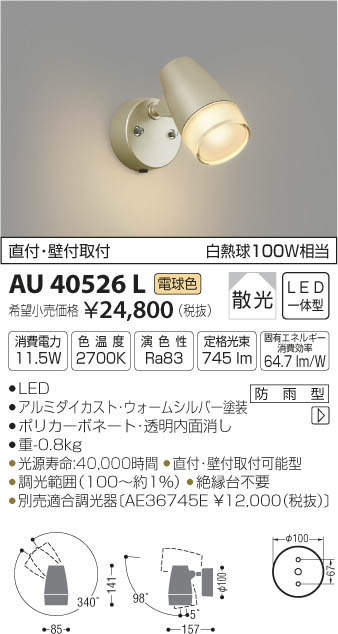 ¥³¥¤¥º¥ß¾ÈÌÀ KOIZUMI LED ¥¢¥¦¥È¥É¥¢¥¹¥Ý¥Ã¥È¥é¥¤¥È AU40526L