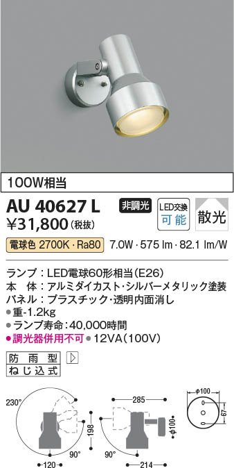 Koizumi ¥³¥¤¥º¥ß¾ÈÌÀ ¥¨¥¯¥¹¥Æ¥ê¥¢¥¹¥Ý¥Ã¥È¥é¥¤¥È AU40627L