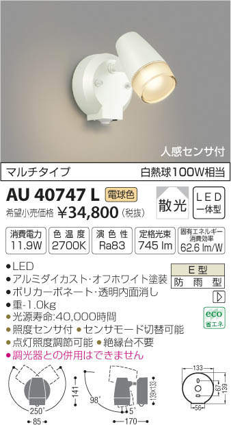 ¥³¥¤¥º¥ß¾ÈÌÀ KOIZUMI LED ¥¢¥¦¥È¥É¥¢¥¹¥Ý¥Ã¥È¥é¥¤¥È AU40747L