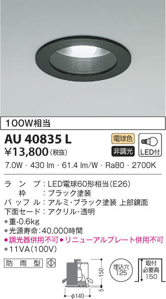 KOIZUMI ¥³¥¤¥º¥ß¾ÈÌÀ £Í·Á¥À¥¦¥ó¥é¥¤¥È AU40835L