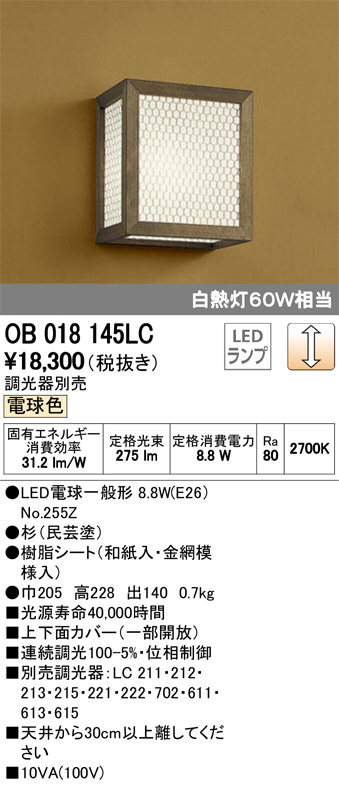 ODELIC ¥ª¡¼¥Ç¥ê¥Ã¥¯ ¥Ö¥é¥±¥Ã¥È OB018145LC