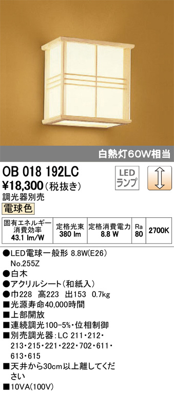 ODELIC ¥ª¡¼¥Ç¥ê¥Ã¥¯ ¥Ö¥é¥±¥Ã¥È OB018192LC