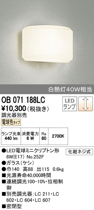 ODELIC ¥ª¡¼¥Ç¥ê¥Ã¥¯ ¥Ö¥é¥±¥Ã¥È OB071188LC