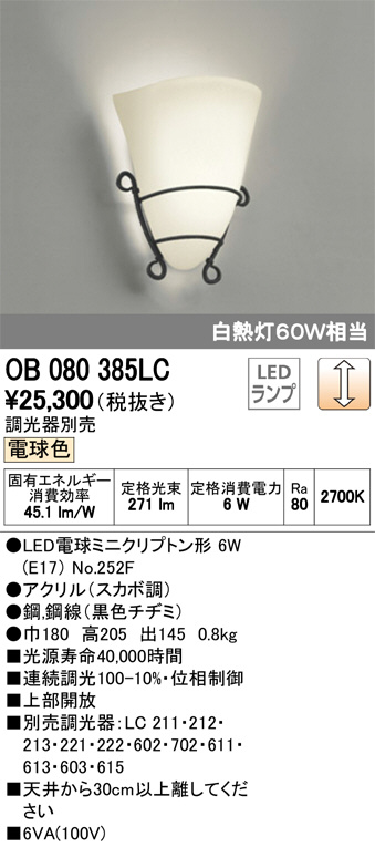 ODELIC ¥ª¡¼¥Ç¥ê¥Ã¥¯ ¥Ö¥é¥±¥Ã¥È OB080385LC