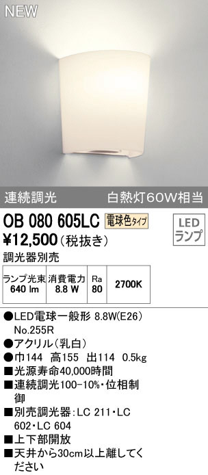 ODELIC ¥ª¡¼¥Ç¥ê¥Ã¥¯ ¥Ö¥é¥±¥Ã¥È OB080605LC