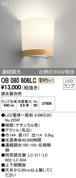 ODELIC ¥ª¡¼¥Ç¥ê¥Ã¥¯ ¥Ö¥é¥±¥Ã¥È OB080606LC