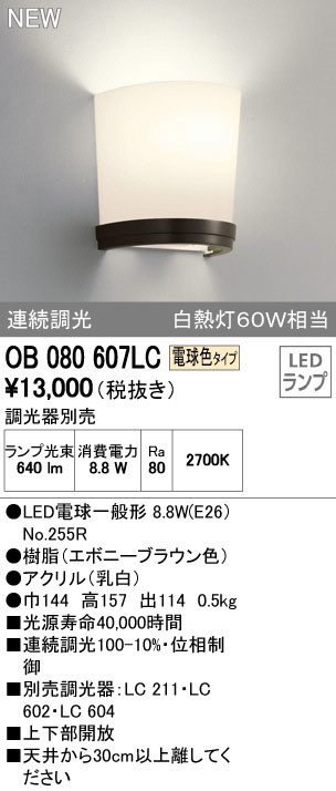 ODELIC ¥ª¡¼¥Ç¥ê¥Ã¥¯ ¥Ö¥é¥±¥Ã¥È OB080607LC