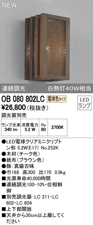 ODELIC ¥ª¡¼¥Ç¥ê¥Ã¥¯ ¥Ö¥é¥±¥Ã¥È OB080802LC