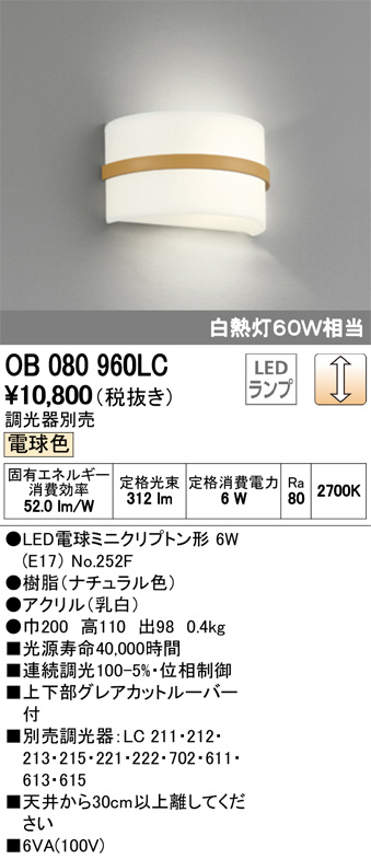 ODELIC ¥ª¡¼¥Ç¥ê¥Ã¥¯ ¥Ö¥é¥±¥Ã¥È OB080960LC