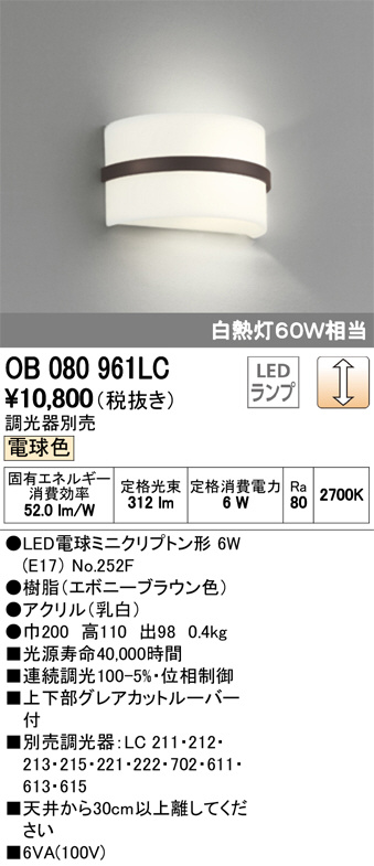 ODELIC ¥ª¡¼¥Ç¥ê¥Ã¥¯ ¥Ö¥é¥±¥Ã¥È OB080961LC
