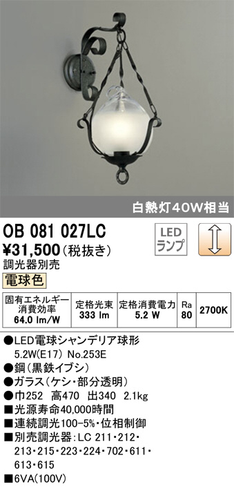 ODELIC ¥ª¡¼¥Ç¥ê¥Ã¥¯ ¥Ö¥é¥±¥Ã¥È OB081027LC