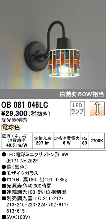 ODELIC ¥ª¡¼¥Ç¥ê¥Ã¥¯ ¥Ö¥é¥±¥Ã¥È OB081046LC