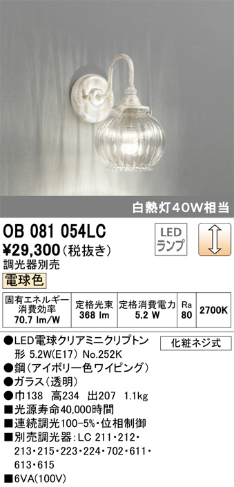 ODELIC ¥ª¡¼¥Ç¥ê¥Ã¥¯ ¥Ö¥é¥±¥Ã¥È OB081054LC