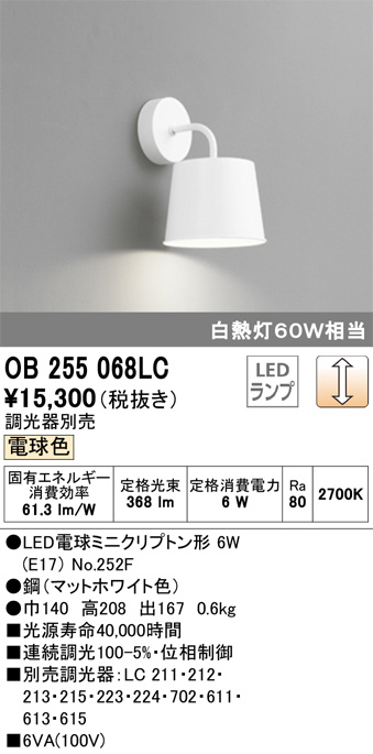 ODELIC ¥ª¡¼¥Ç¥ê¥Ã¥¯ ¥Ö¥é¥±¥Ã¥È OB255068LC