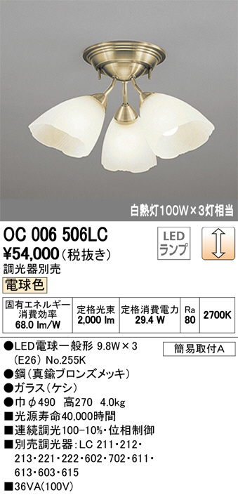 ODELIC ¥ª¡¼¥Ç¥ê¥Ã¥¯ ¥·¥ã¥ó¥Ç¥ê¥¢ OC006506LC