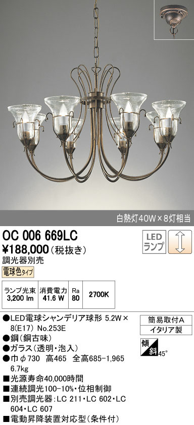 ODELIC ¥ª¡¼¥Ç¥ê¥Ã¥¯ ¥·¥ã¥ó¥Ç¥ê¥¢ OC006669LC