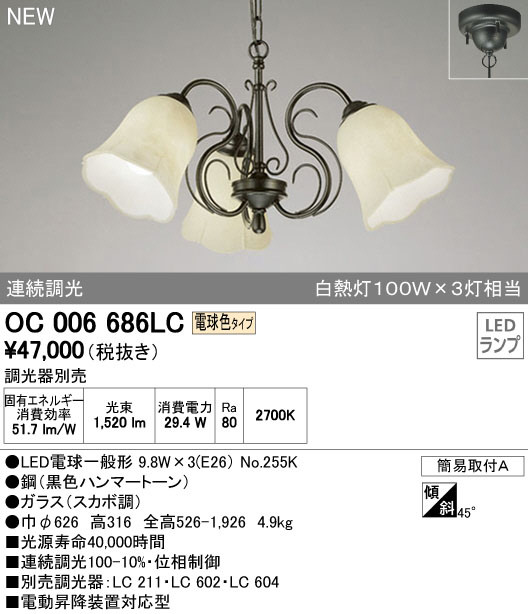 ODELIC ¥ª¡¼¥Ç¥ê¥Ã¥¯ ¥·¥ã¥ó¥Ç¥ê¥¢ OC006686LC