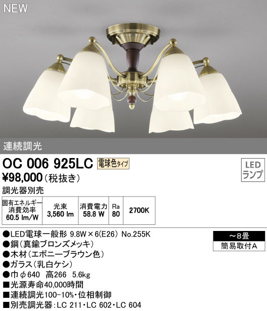 ODELIC ¥ª¡¼¥Ç¥ê¥Ã¥¯ ¥·¥ã¥ó¥Ç¥ê¥¢ OC006925LC