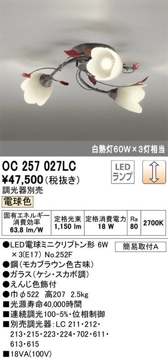 ODELIC ¥ª¡¼¥Ç¥ê¥Ã¥¯ ¥·¥ã¥ó¥Ç¥ê¥¢ OC257027LC