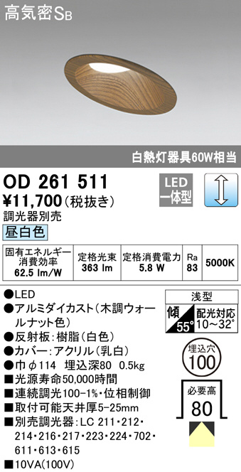 ODELIC ¥ª¡¼¥Ç¥ê¥Ã¥¯ ¥À¥¦¥ó¥é¥¤¥È OD261511
