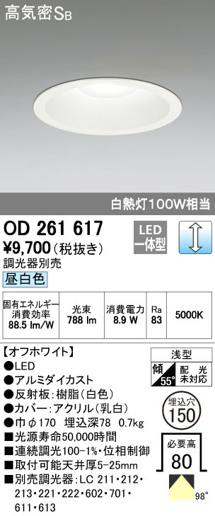 ODELIC ¥ª¡¼¥Ç¥ê¥Ã¥¯ ¥À¥¦¥ó¥é¥¤¥È OD261617