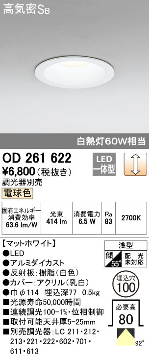 ODELIC ¥ª¡¼¥Ç¥ê¥Ã¥¯ ¥À¥¦¥ó¥é¥¤¥È OD261622