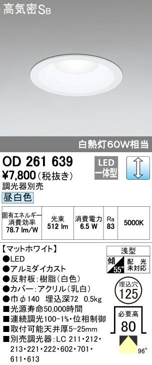 ODELIC ¥ª¡¼¥Ç¥ê¥Ã¥¯ ¥À¥¦¥ó¥é¥¤¥È OD261639