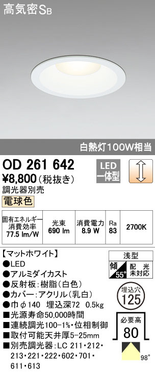ODELIC ¥ª¡¼¥Ç¥ê¥Ã¥¯ ¥À¥¦¥ó¥é¥¤¥È OD261642