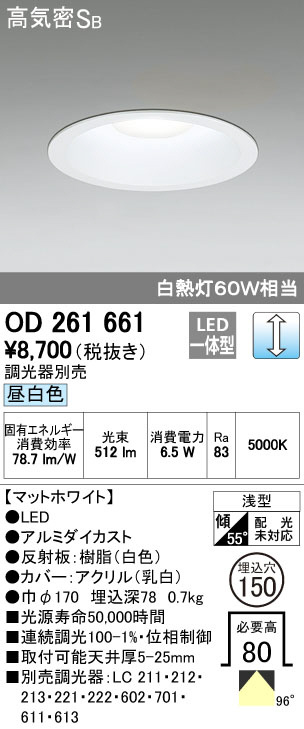 ODELIC ¥ª¡¼¥Ç¥ê¥Ã¥¯ ¥À¥¦¥ó¥é¥¤¥È OD261661