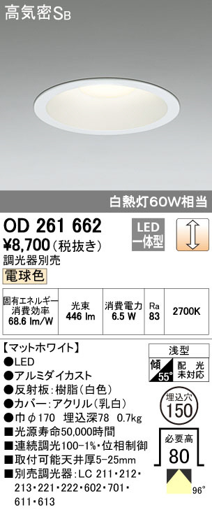 ODELIC ¥ª¡¼¥Ç¥ê¥Ã¥¯ ¥À¥¦¥ó¥é¥¤¥È OD261662